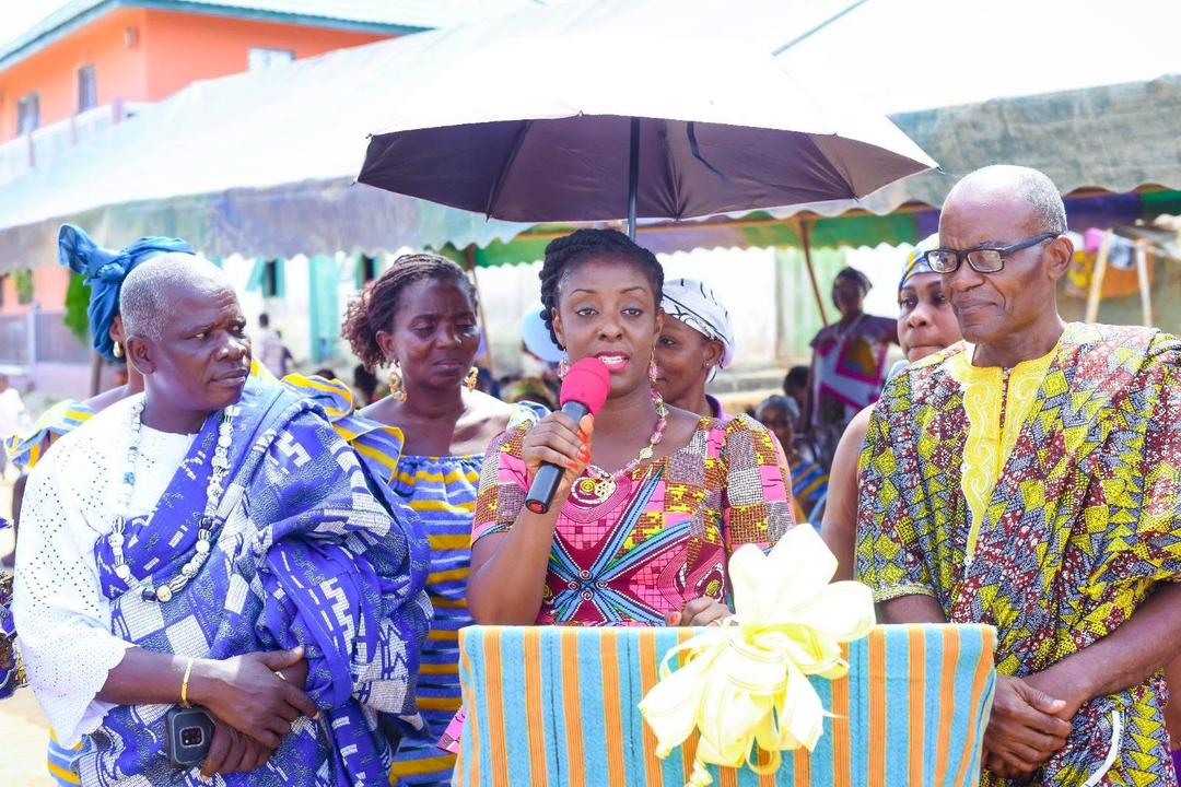 La Marraine de cette cérémonie, présidente de la CDAIM, Madame Ollo-Agnero Carole a remis à 30 familles de veuves et 30 orphelins des kits de vivres et fournitures scolaires.